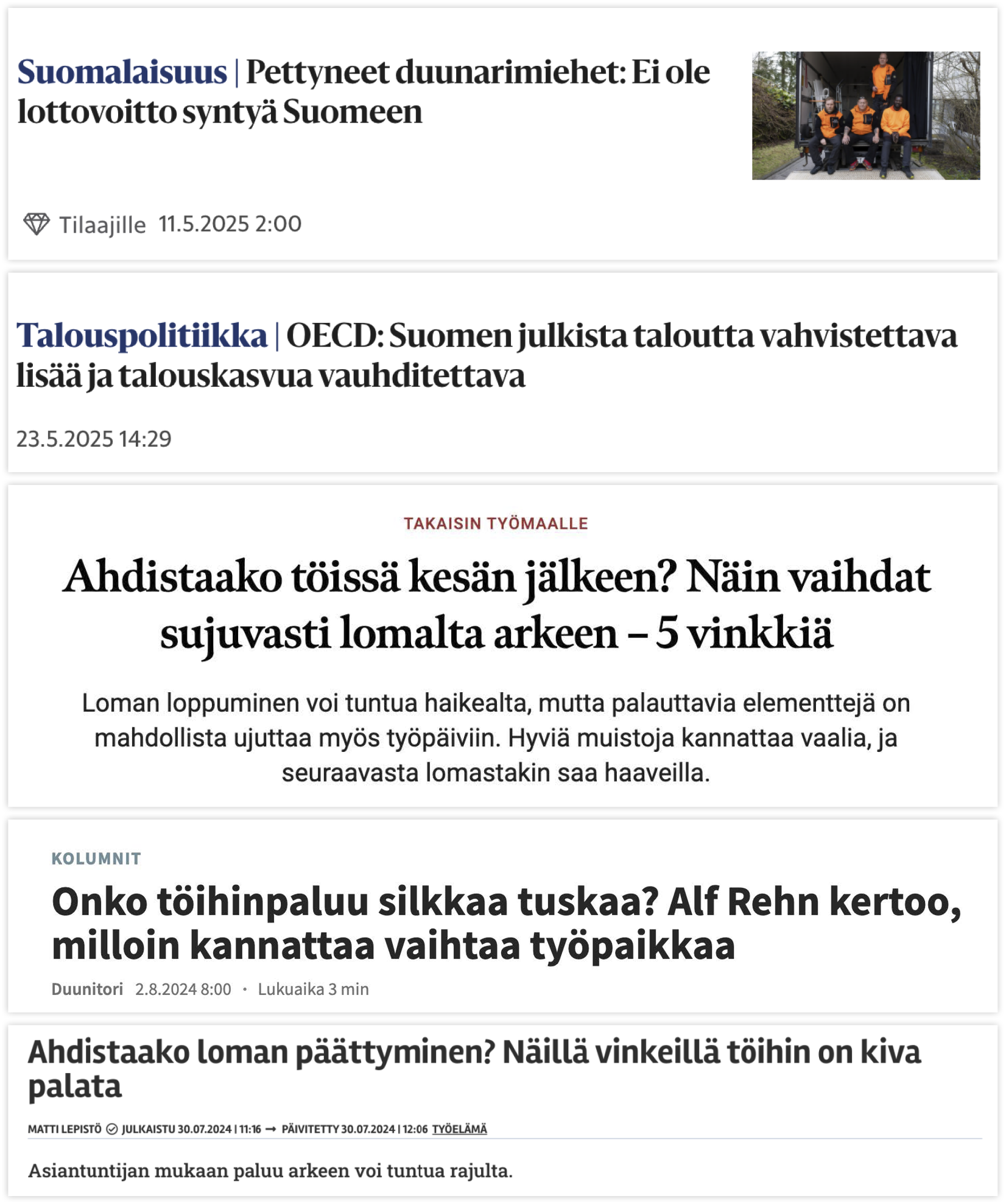 Me kuitenkin näimme lomaltapaluussa myös omat etunsa. Silloin pääsemme taas viettämään aikaa heidän kanssaan, joiden kanssa jaamme suuren osan elämästämme – ja joiden varaan työn merkitys ja yritysten kasvu lopulta rakentuvat.