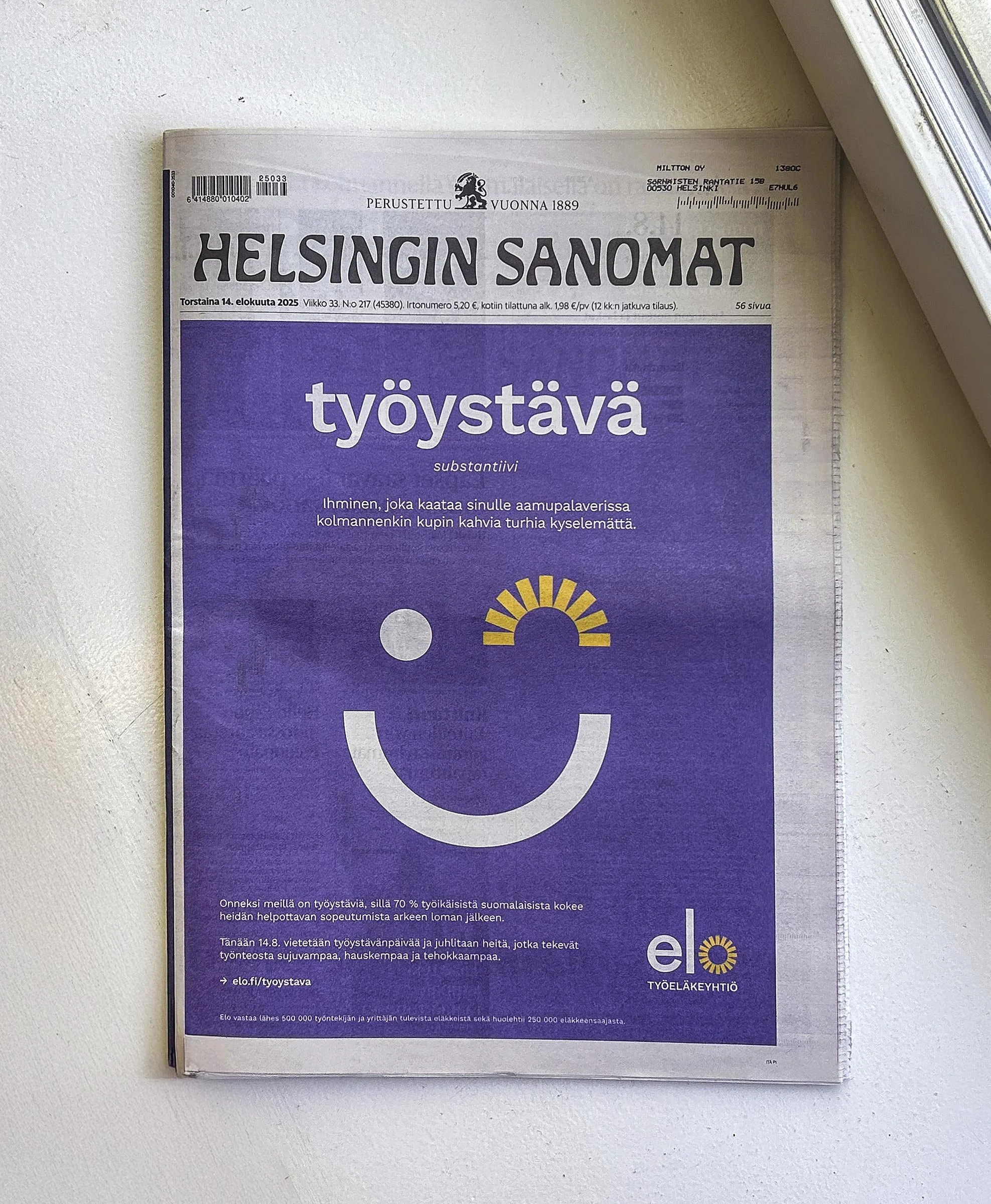 Tutkimusten mukaan se, kuinka tyytyväisiä olemme työpaikoilla, linkittyy suoraan yritysten kannattavuuteen. Valitettavasti toivottuna kampanja-aikana elokuussa mediatila täyttyy lomaltapaluumasennuksen käsikirjoituksista. Ei ole helppoa sukeltaa takaisin työelämään täynnä puhtia, kun kaikkialla maalaillaan kuvia joululomiin asti kestävästä pakkopullasta.