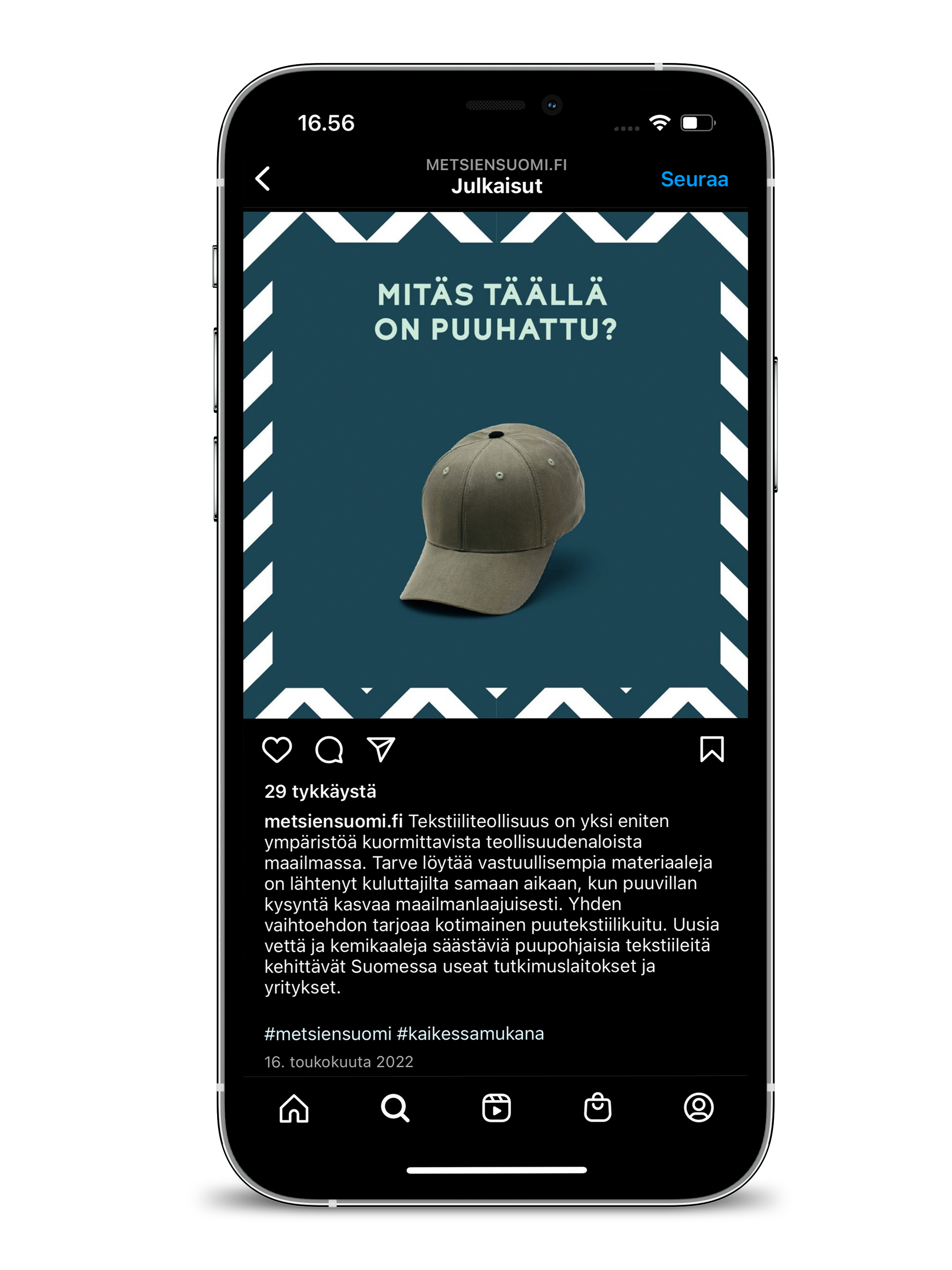 Metsien Suomi -hanke halusi muistuttaa suomalaisia metsäalan innovaatioiden monipuolisuudesta. Puusta kun on muuhunkin kuin vain kakkosneloseksi ja selluksi. Suomi ei ole pelkästään raaka-aineiden tuottaja, vaan edelläkävijä metsäalan korkean jalostusasteen innovaatioiden tuottajana.