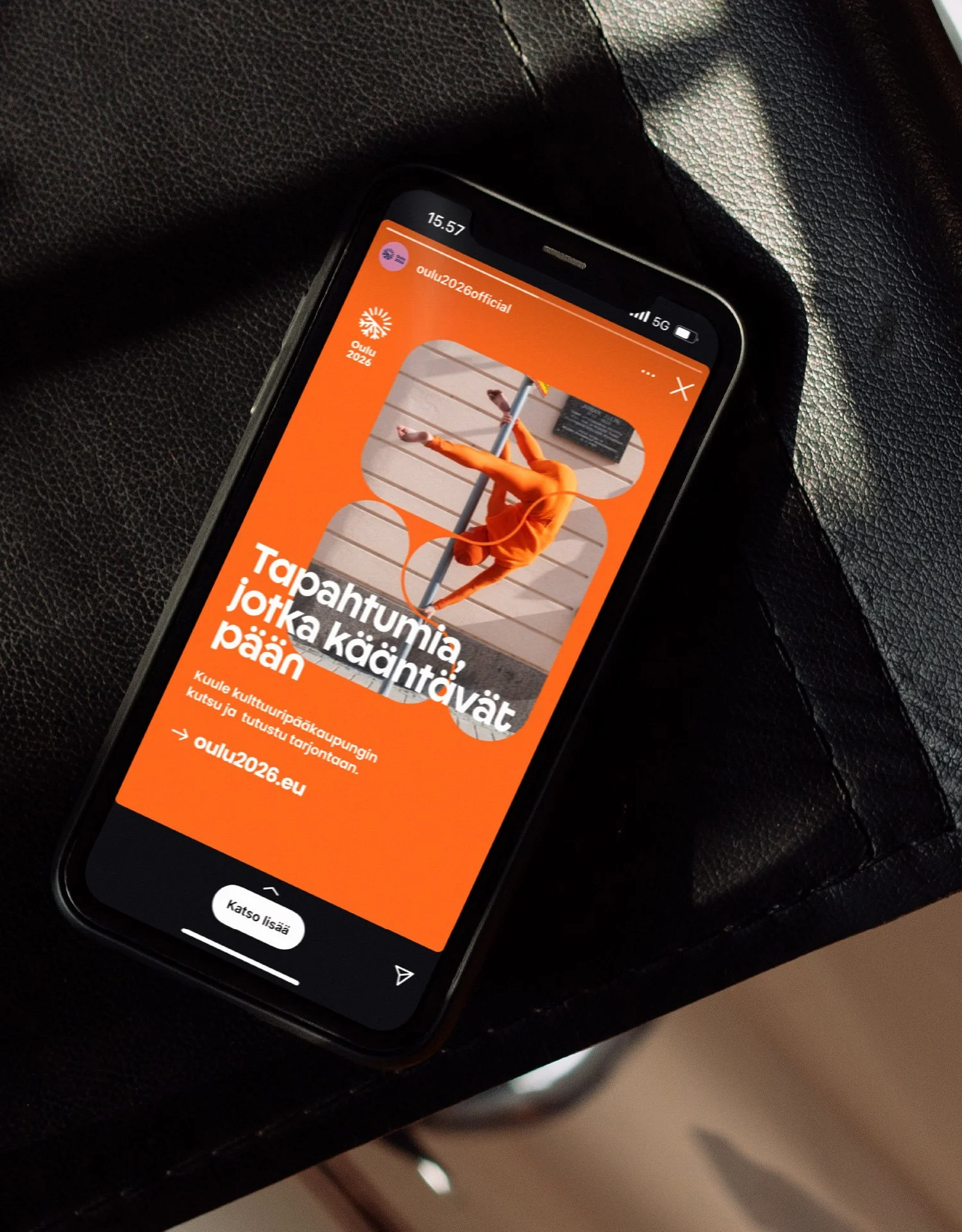 Brändikuvat ovat keskeinen osa Oulu2026:n visuaalista identiteettiä. Niiden tarinankerronnallinen voima yhdistää Oulun kaupunkielämän, alakulttuurit sekä luonnon yhdeksi kokonaisuudeksi, joka kuvaa kaupunkia ja sitä ympäröivää aluetta mielenkiintoisella, yllättävällä ja syvällisellä tavalla.