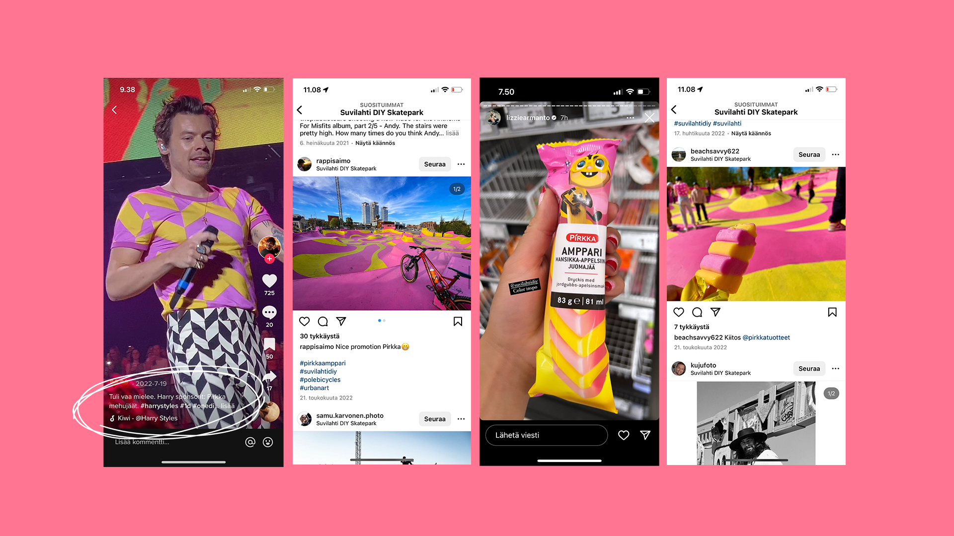 Flow- ja Tuska-festareiden aikana amppariraidat taustoittivat festarikävijöiden kuvia. Parkki antoi taustan myös monille brändeille, jotka kävivät kuvaamassa omia mainosmateriaalejaan siellä.