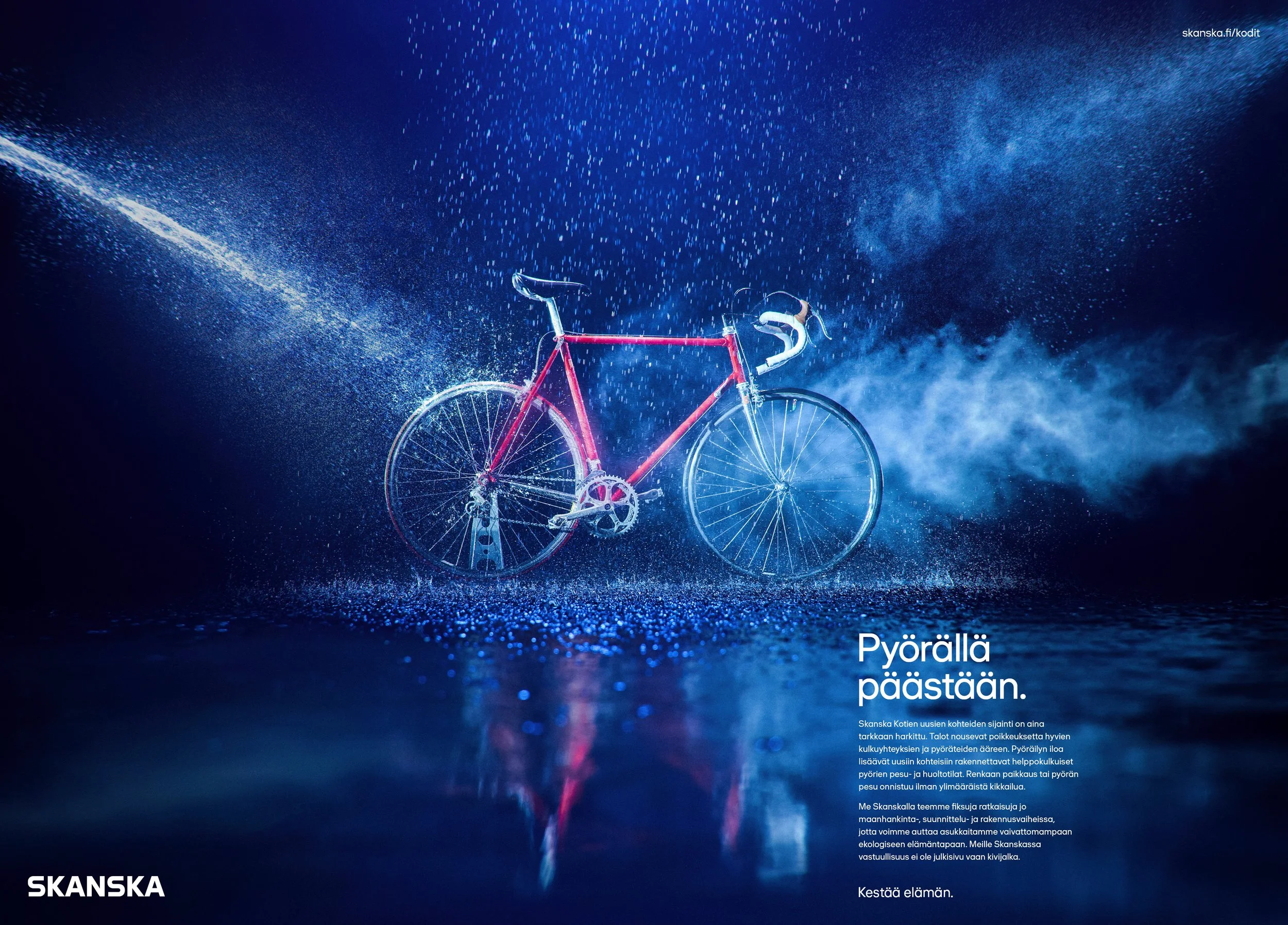 Jokaisesta Skanskan vastuullisuusargumentista tehtiin myös printtimainokset, joissa absurdin kuvan ja otsikkotekstin välisestä suhteesta syntyy katsojalle hieno oivalluksen hetki – viimeistään leipätekstin kautta.