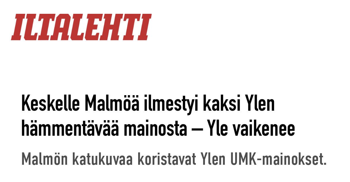 Mut edelleen miks helvetissä jossain Malmössä mainostetaan UMK:ta?