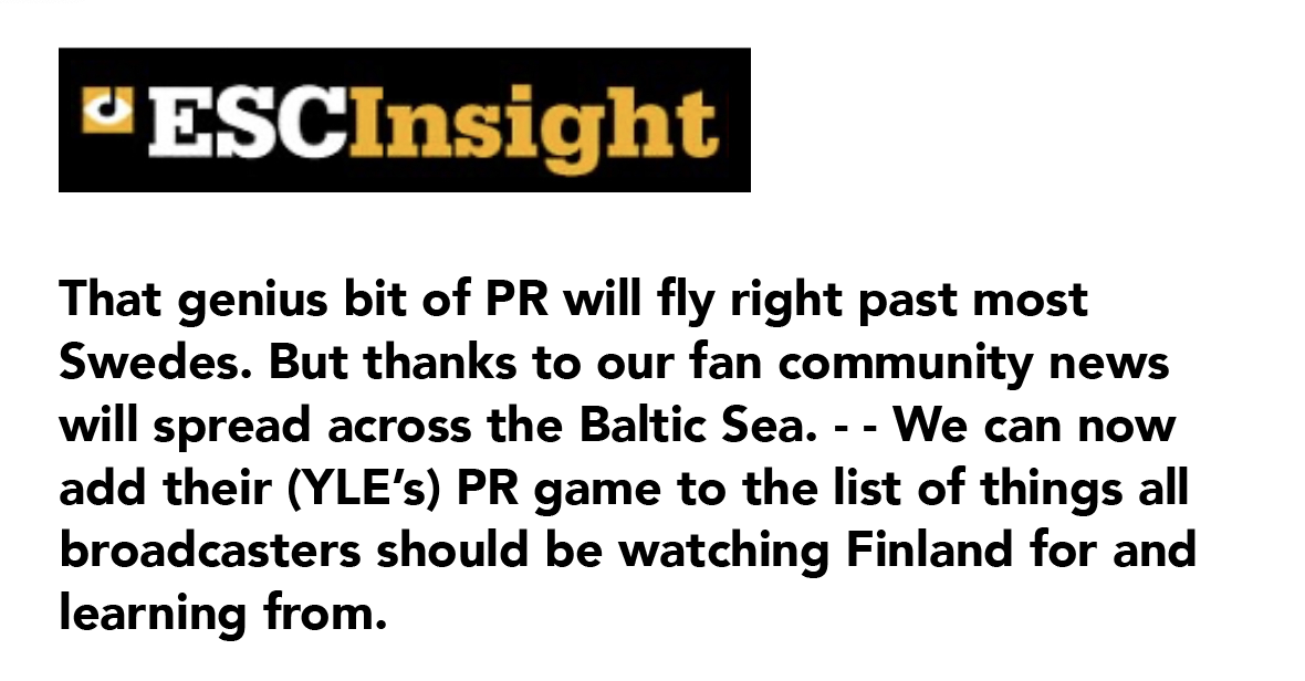 I think that thanks to Käärijä I have come to understand the Finnish type of humour because without seeing the whole YLE banner, I immediately understood that “wannabe host city” referred to Tampere and not Malmö.